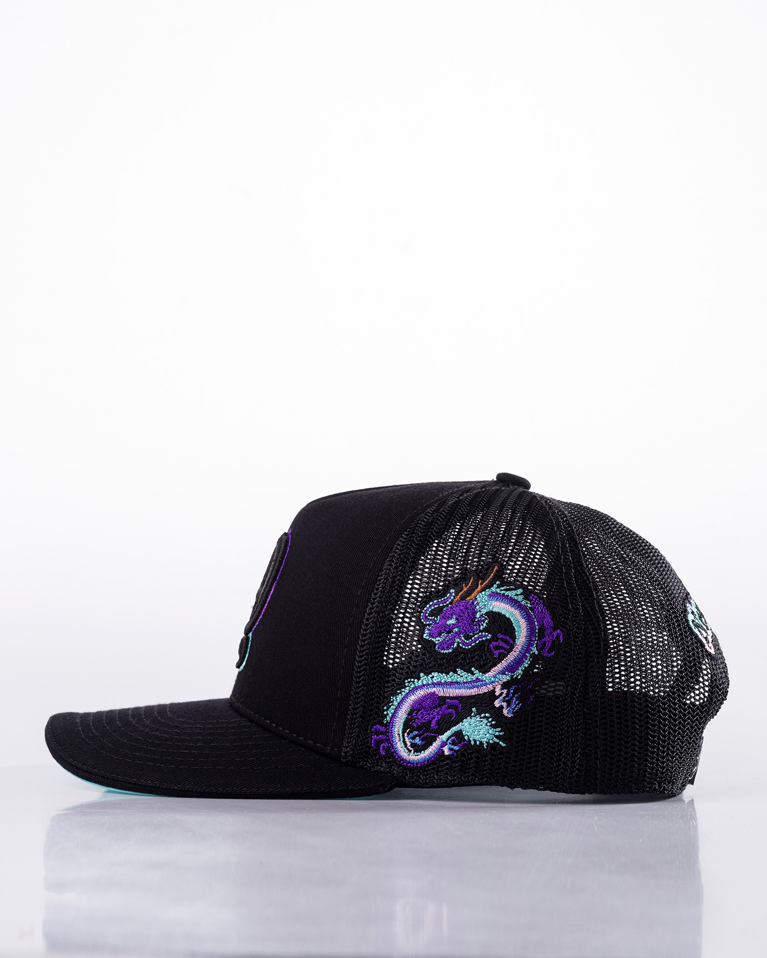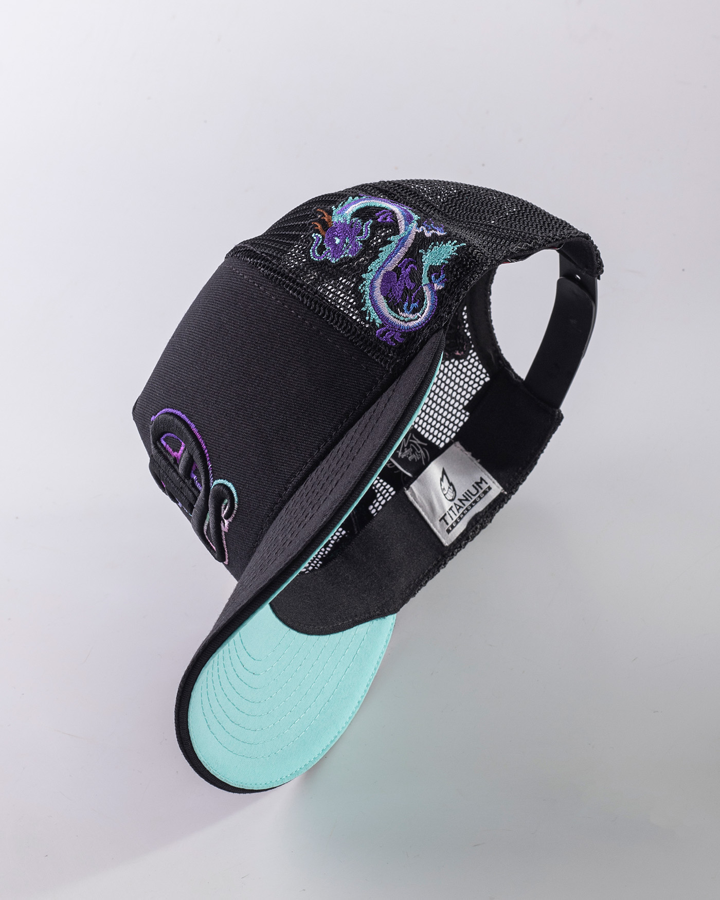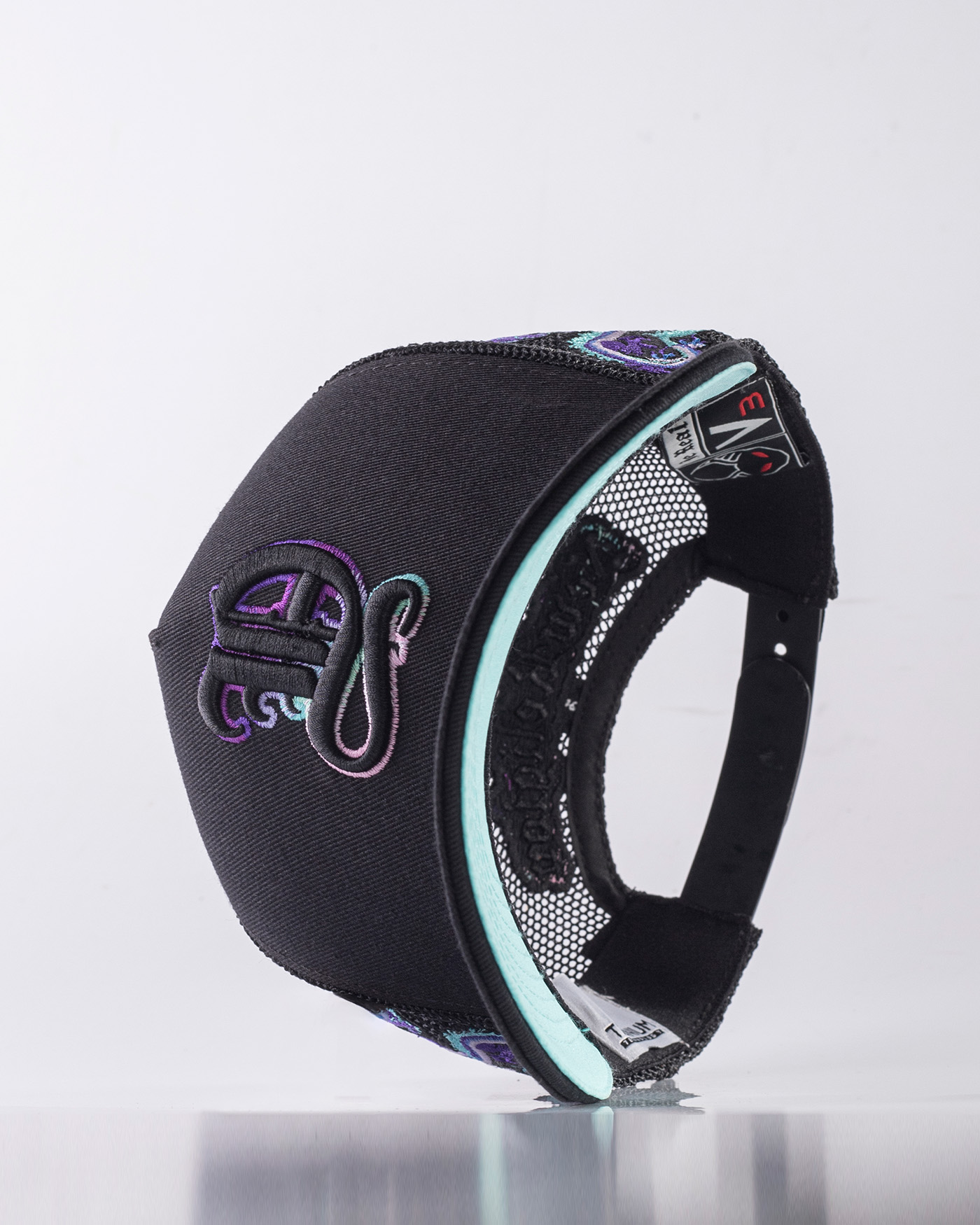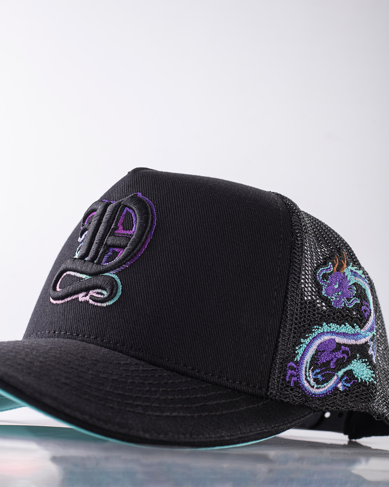 •COLOR: Gorra en color negro y azul turquesa, bordados en negro, morado, fucsia, violeta, verde aguamarina, azul turquesa, rosa y café.