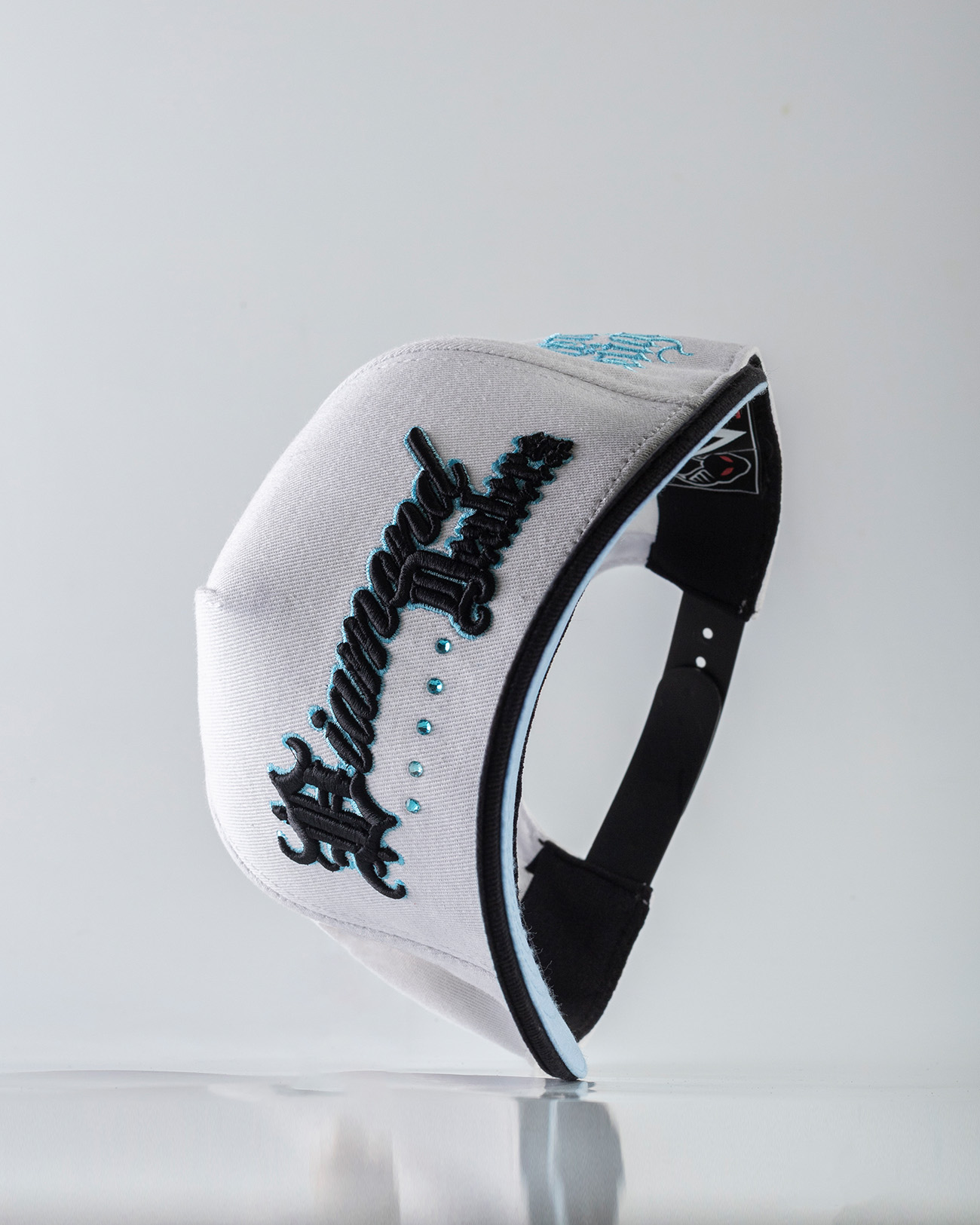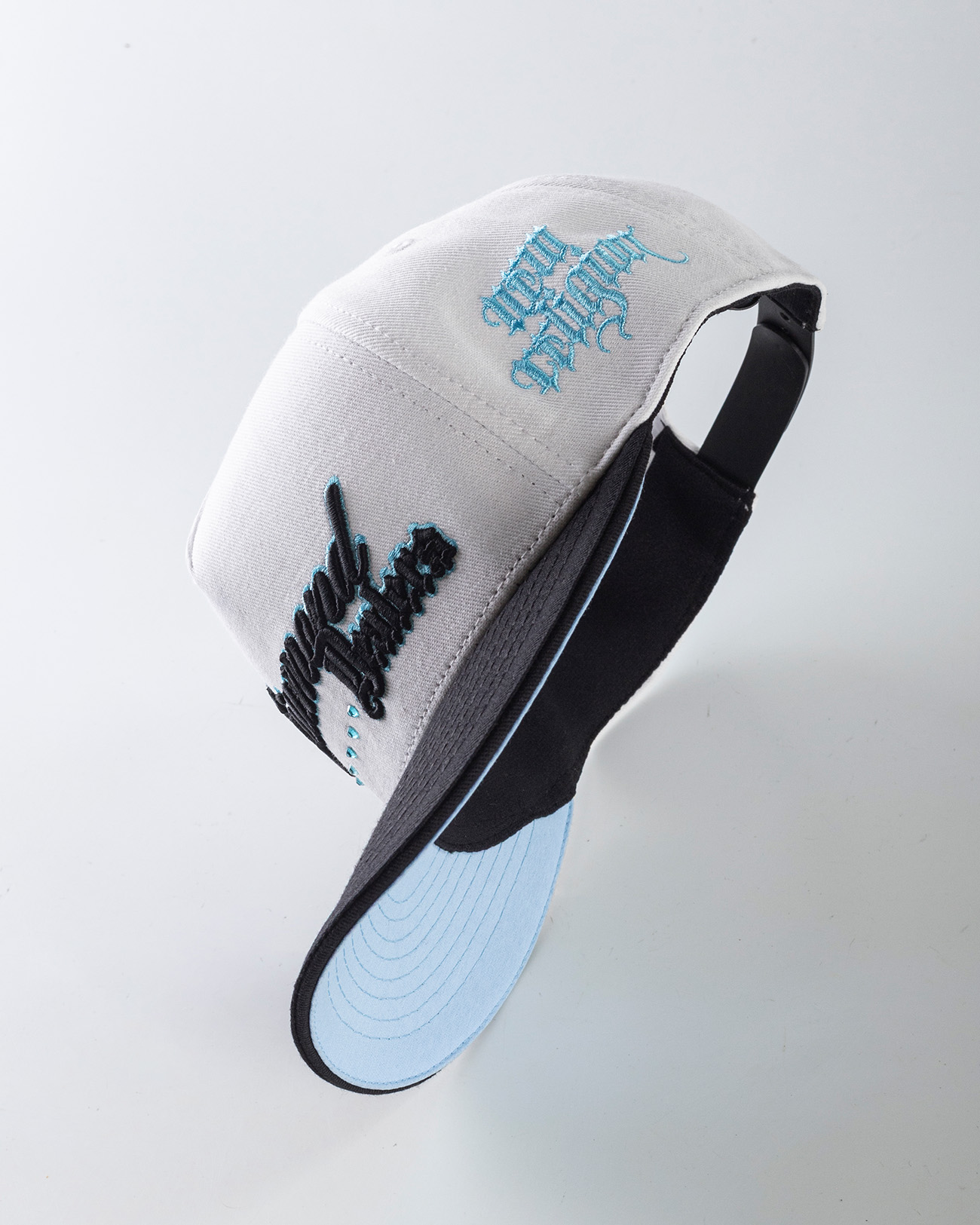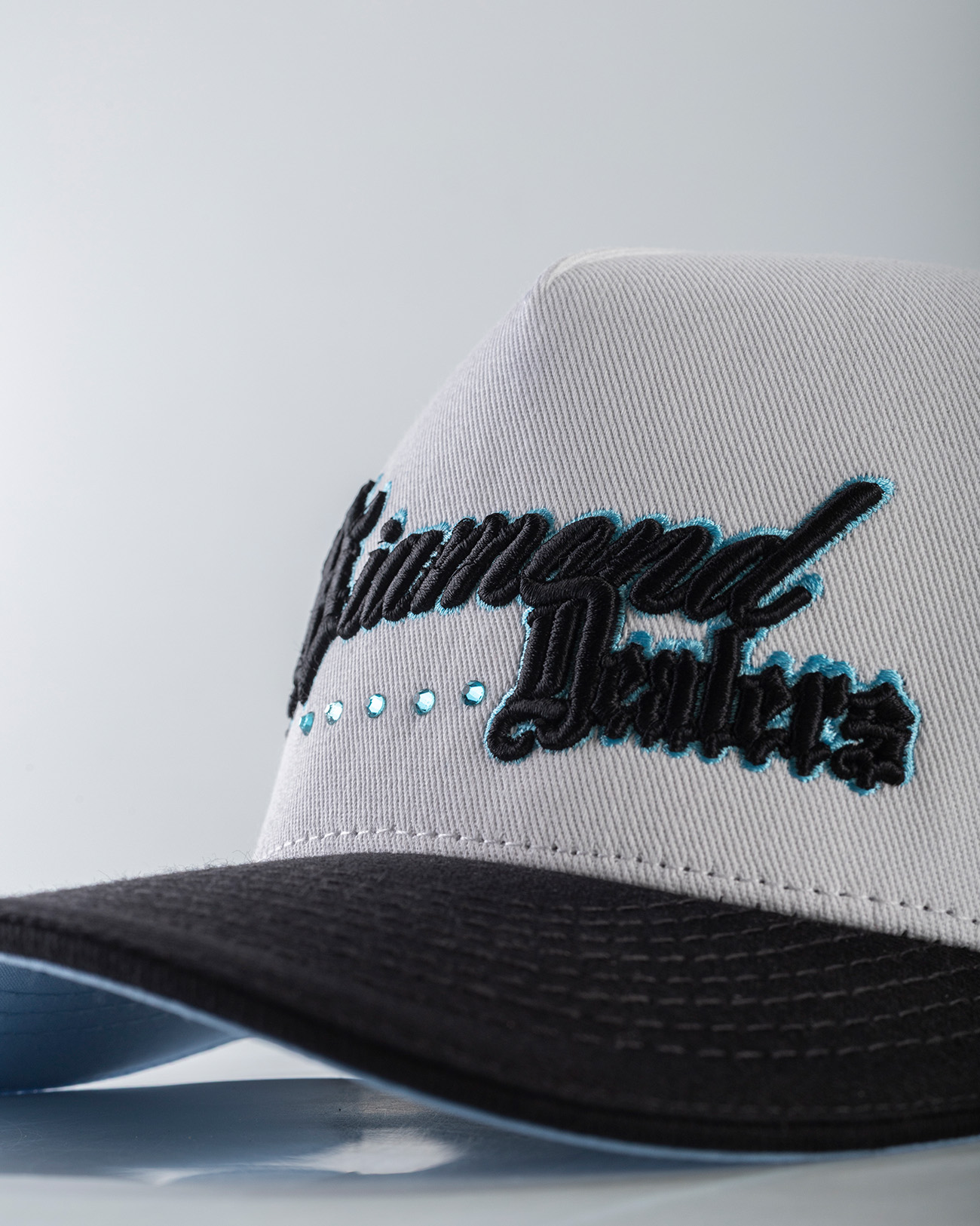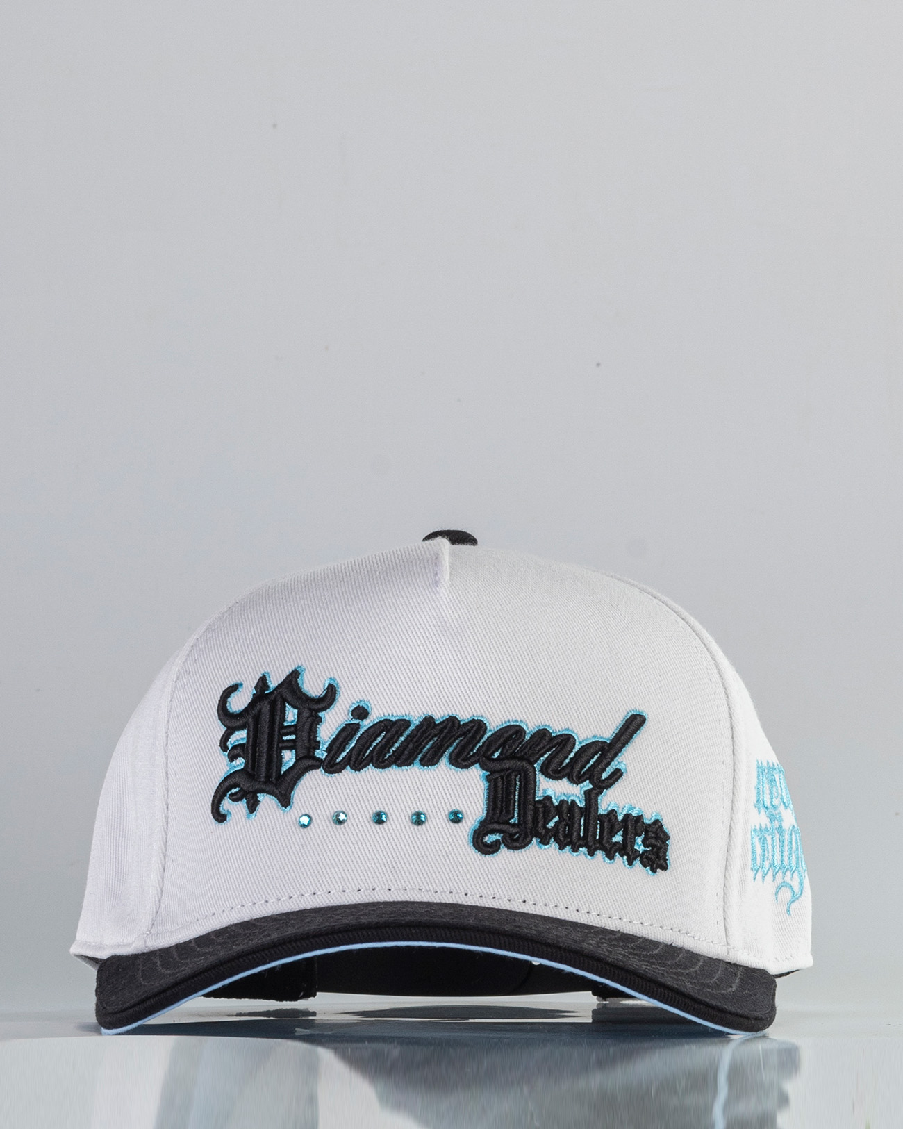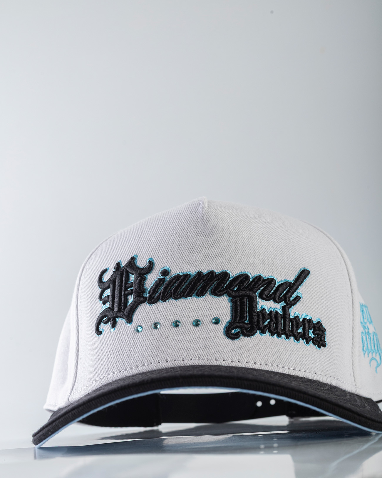 鈥OLOR: Gorra en color blanco, negro y azul cielo, bordados en negro y azul luna.