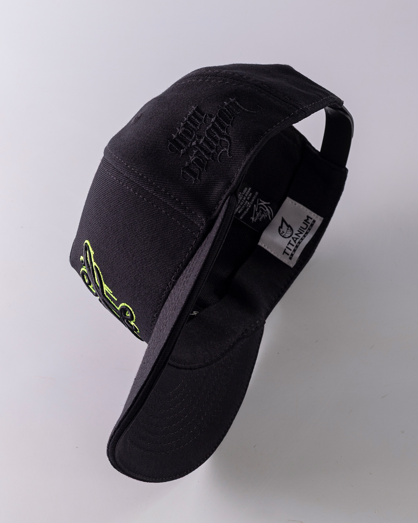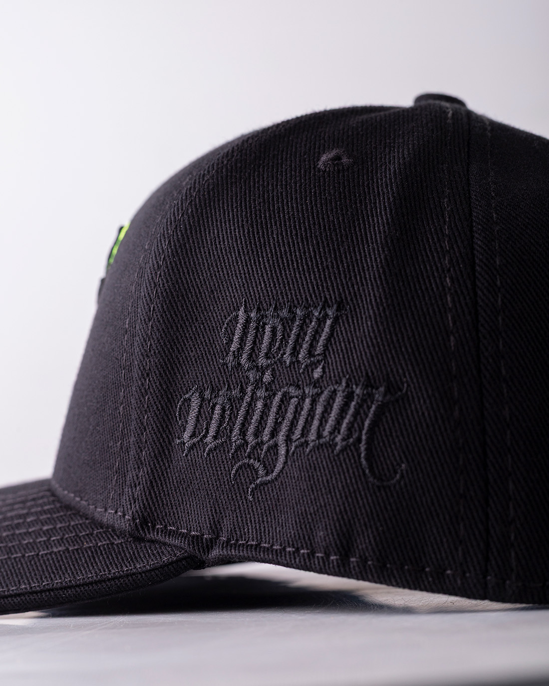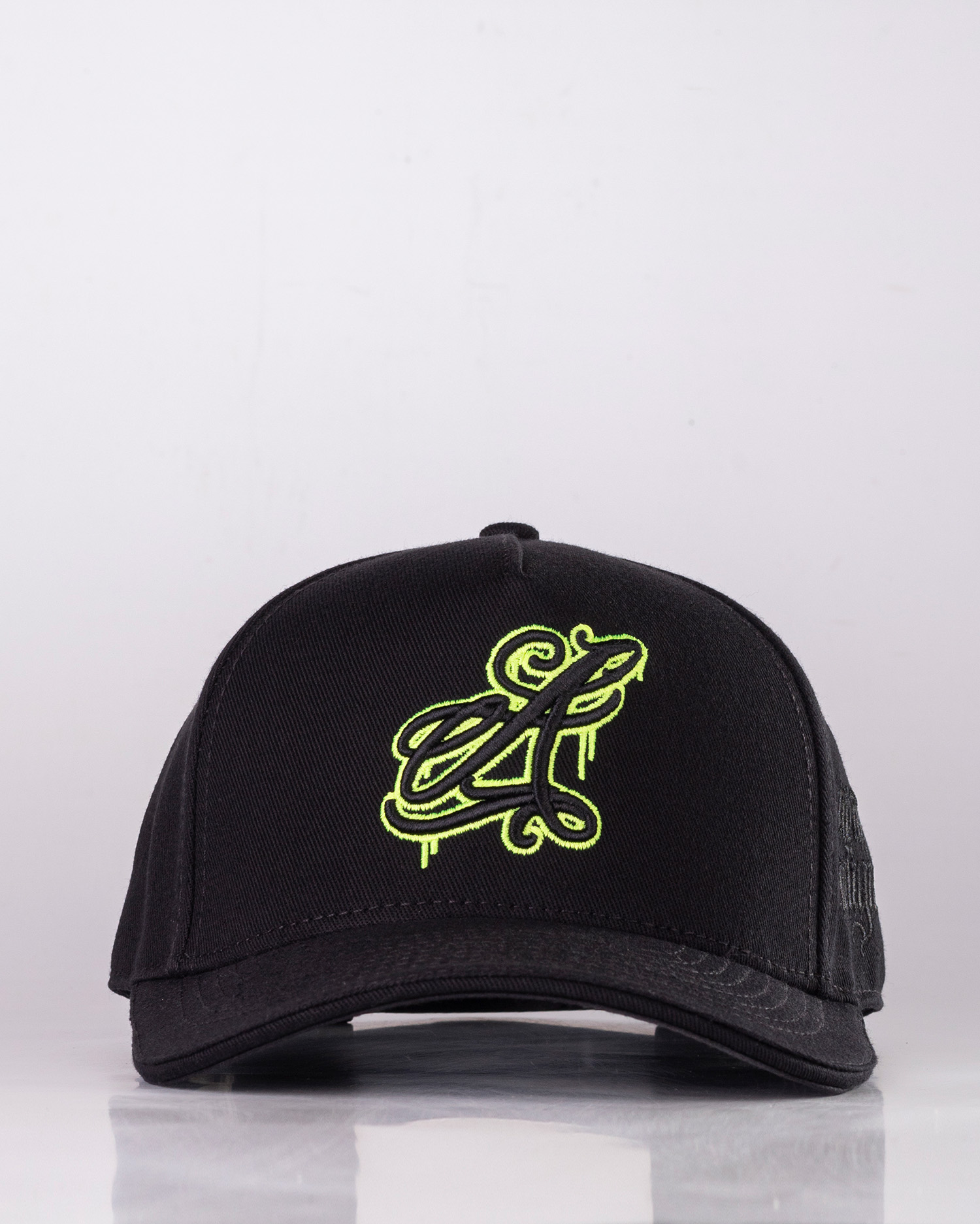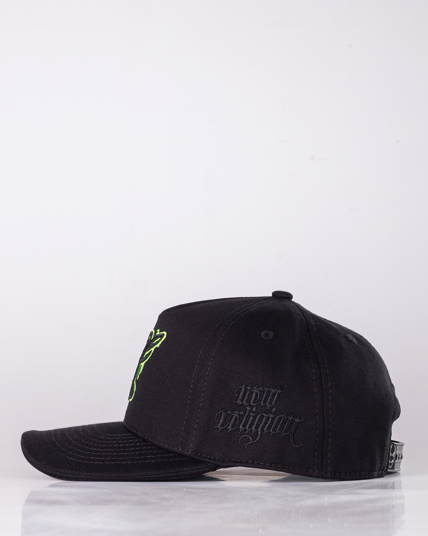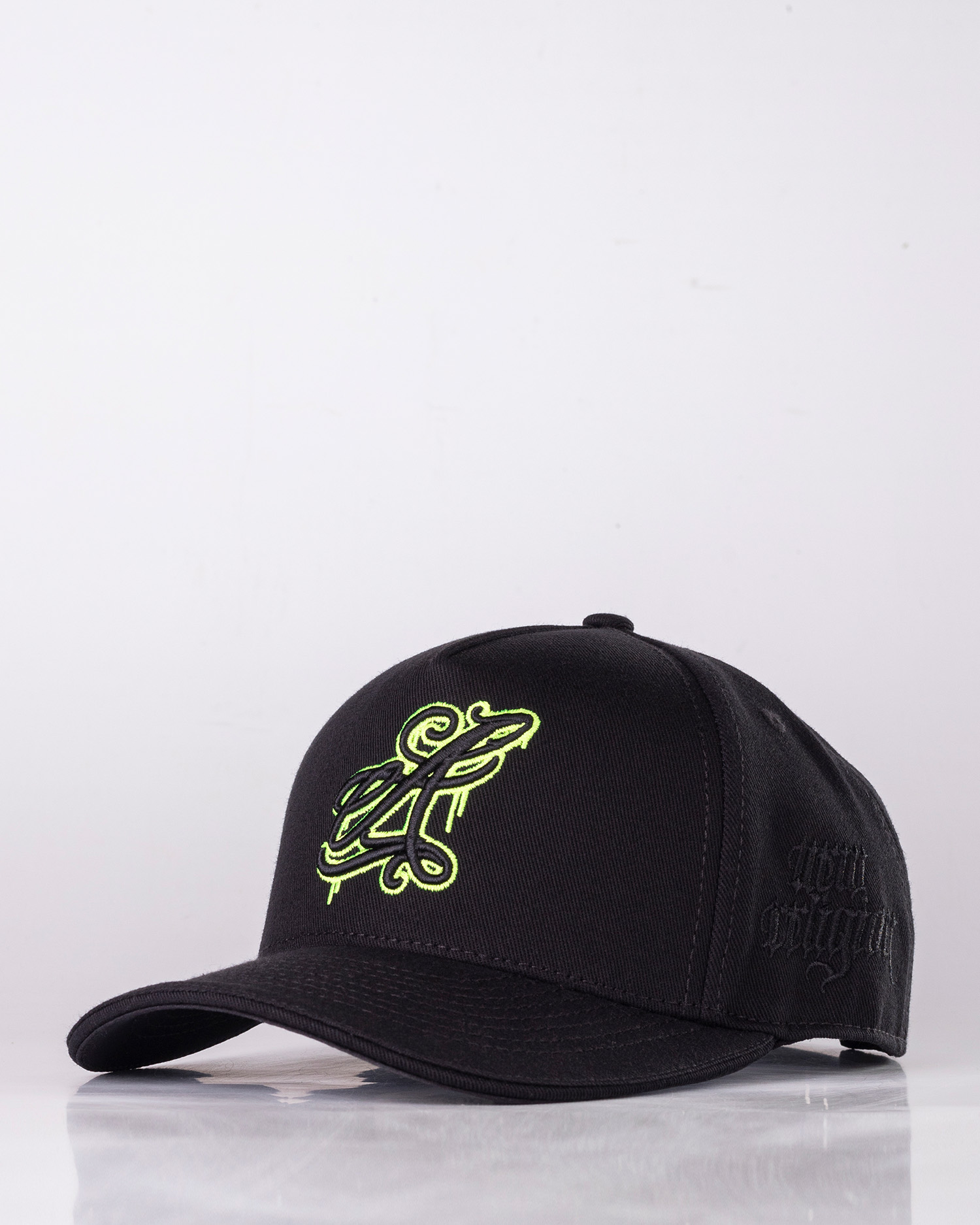 •COLOR: Gorra en color negro, bordados en negro y verde neón.
