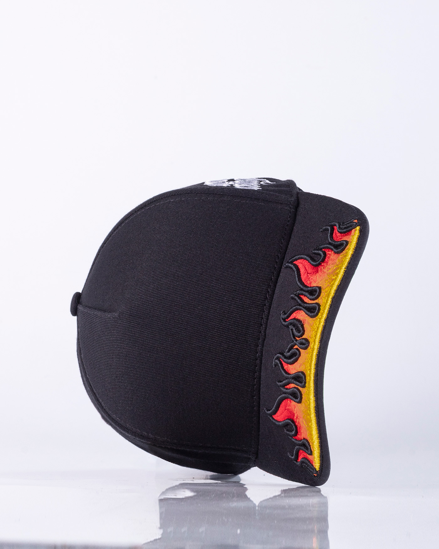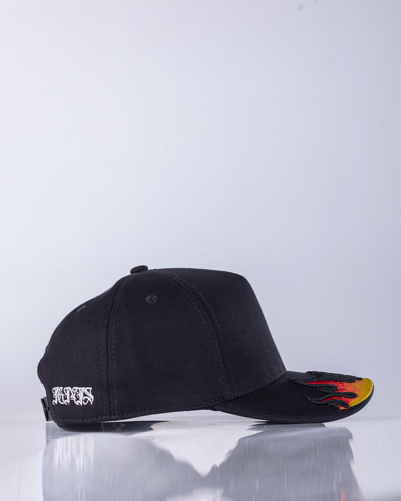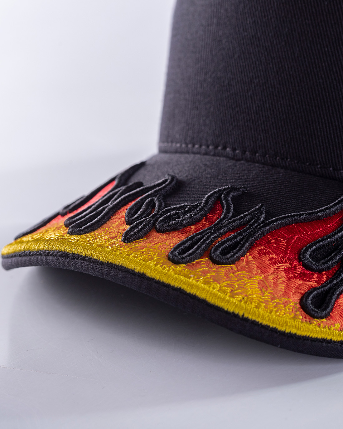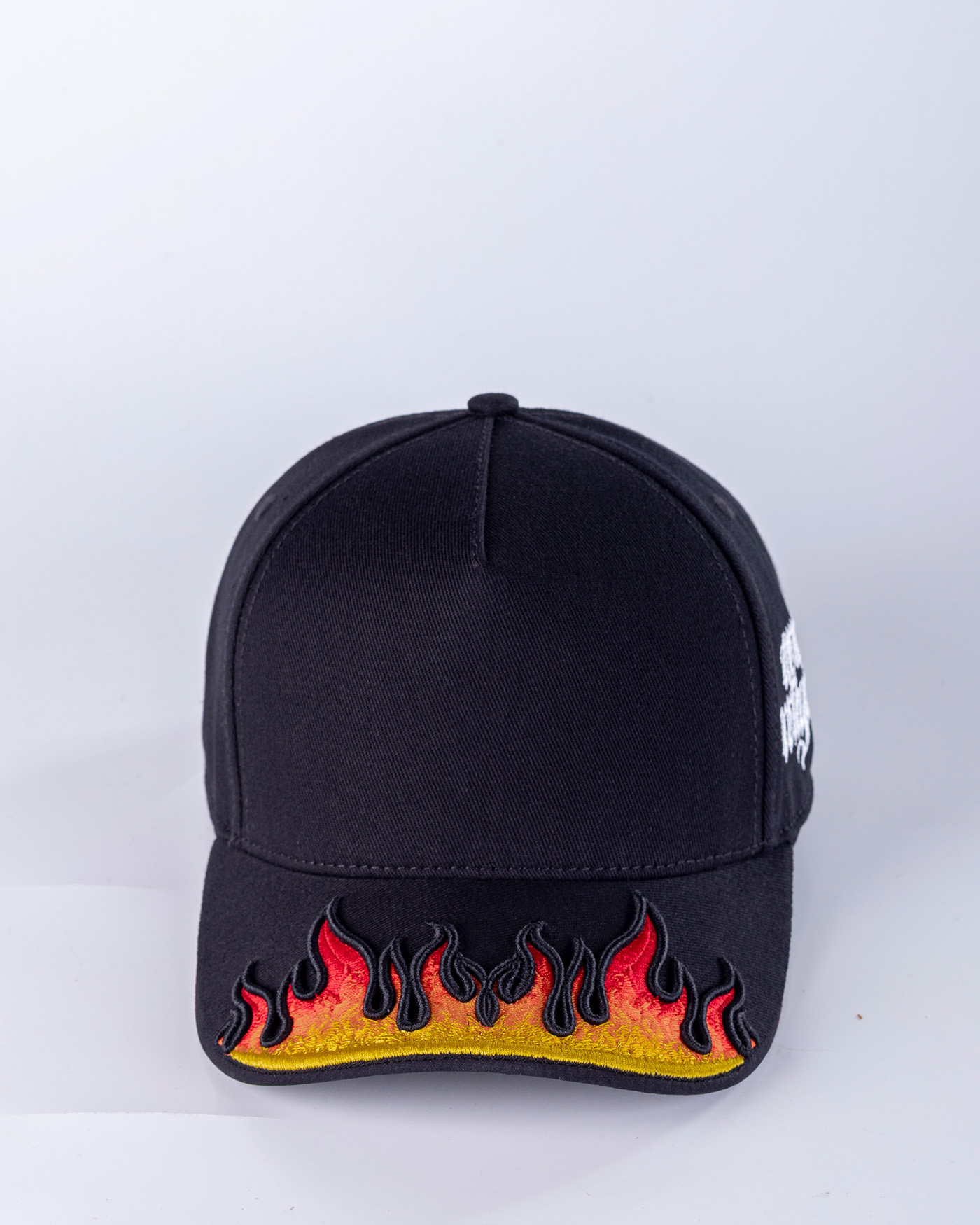 •COLOR: Gorra en color negro, bordados en negro, blanco, amarillo, naranja y rojo fuego.