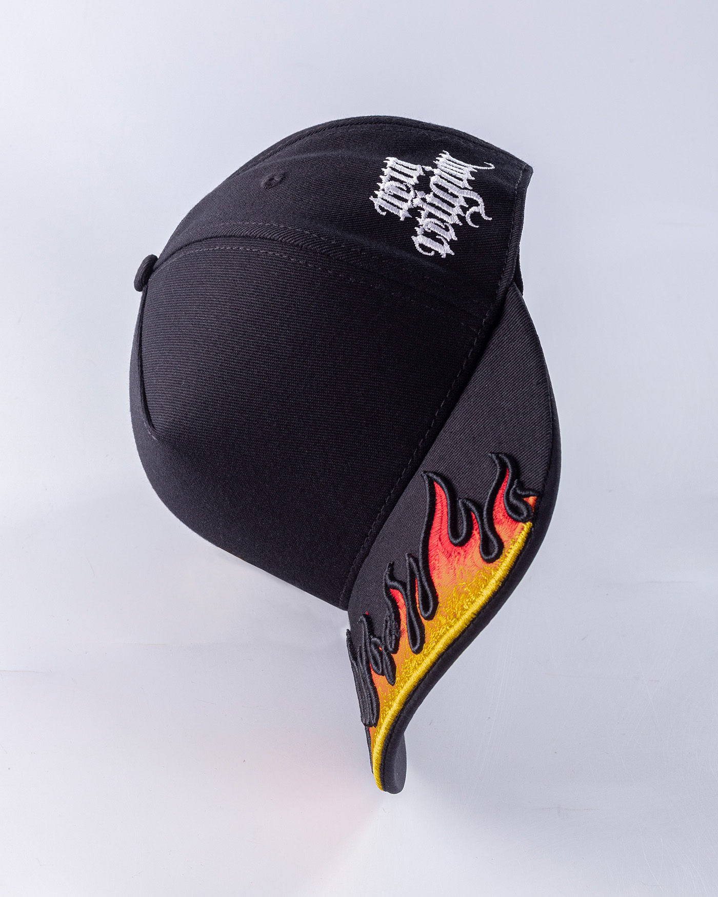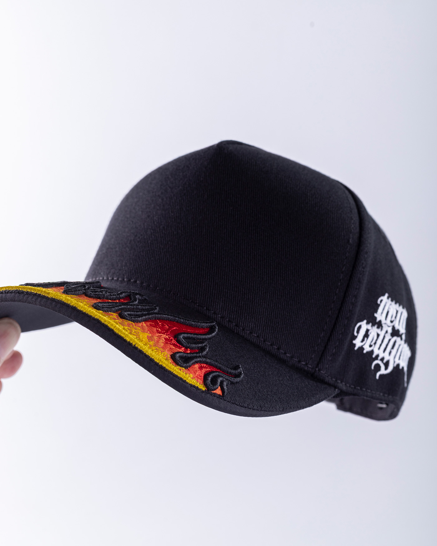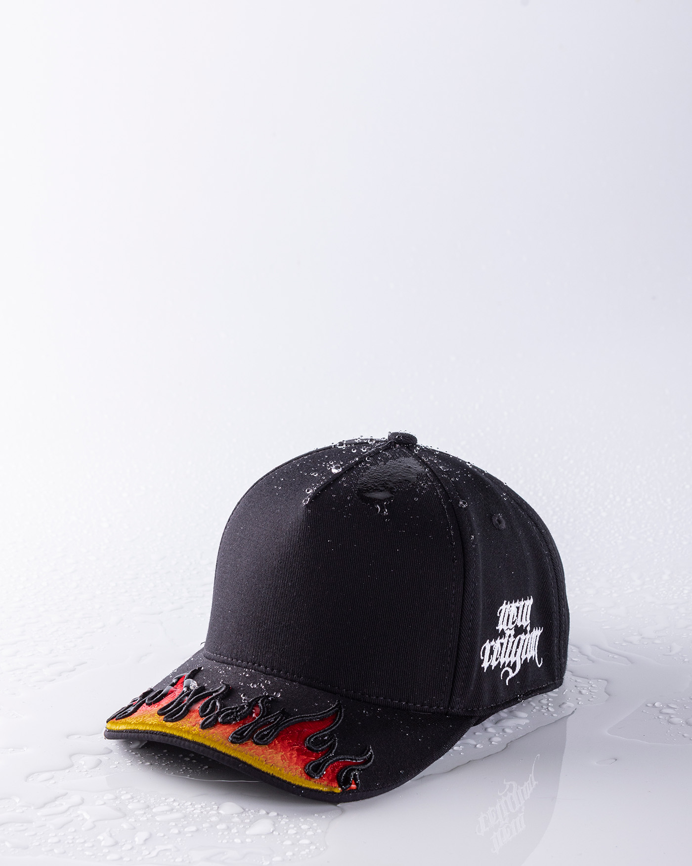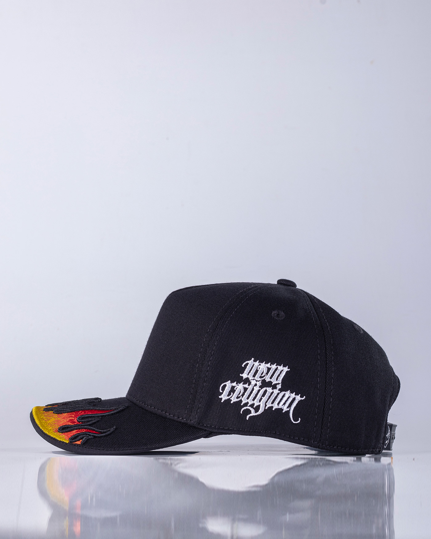 •COLOR: Gorra en color negro, bordados en negro, blanco, amarillo, naranja y rojo fuego.