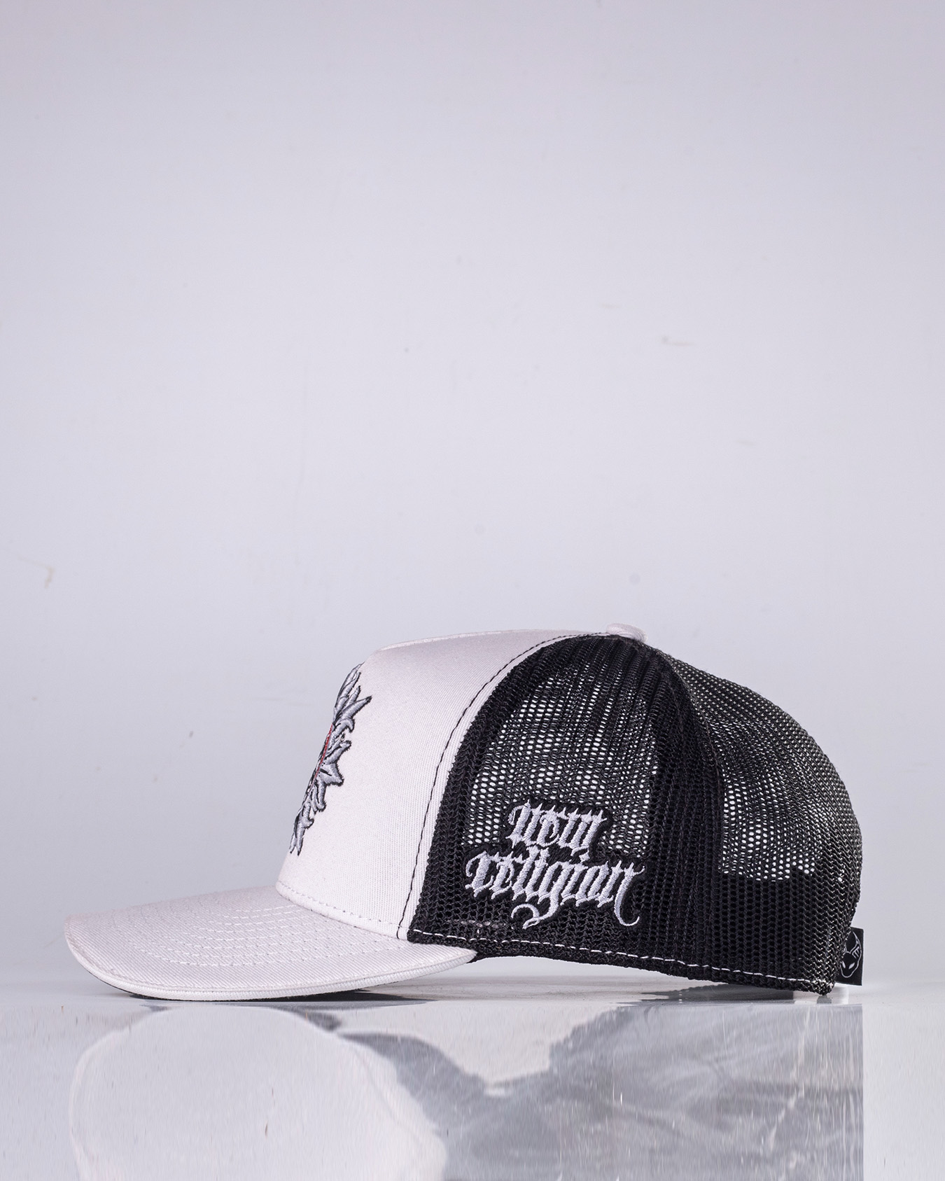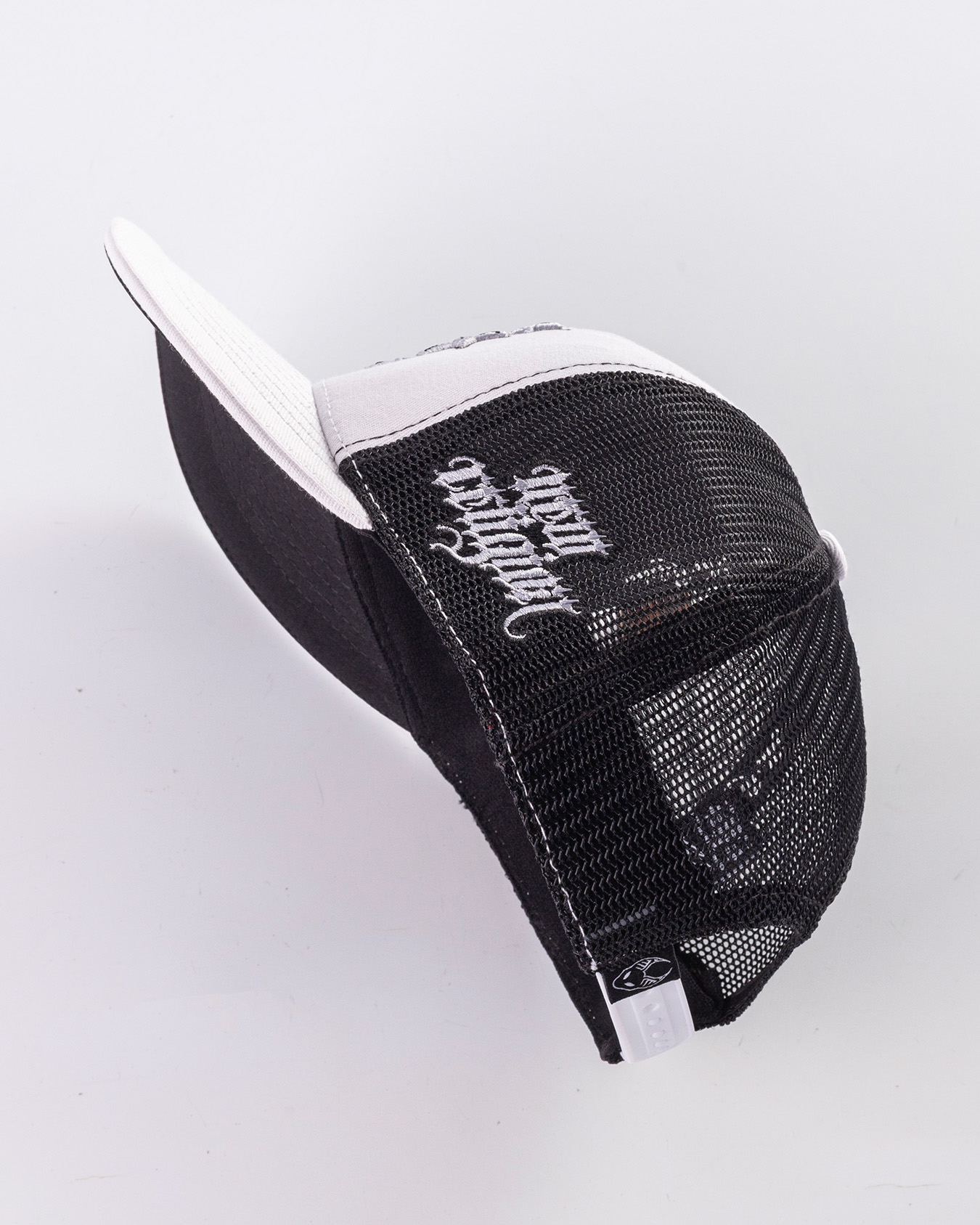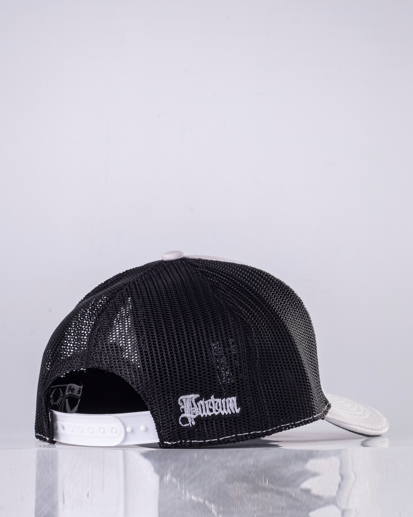 鈥OLOR: Gorra en color blanco y negro, bordados en gris ceniza, rojo sangre, hueso mate, negro y blanco.