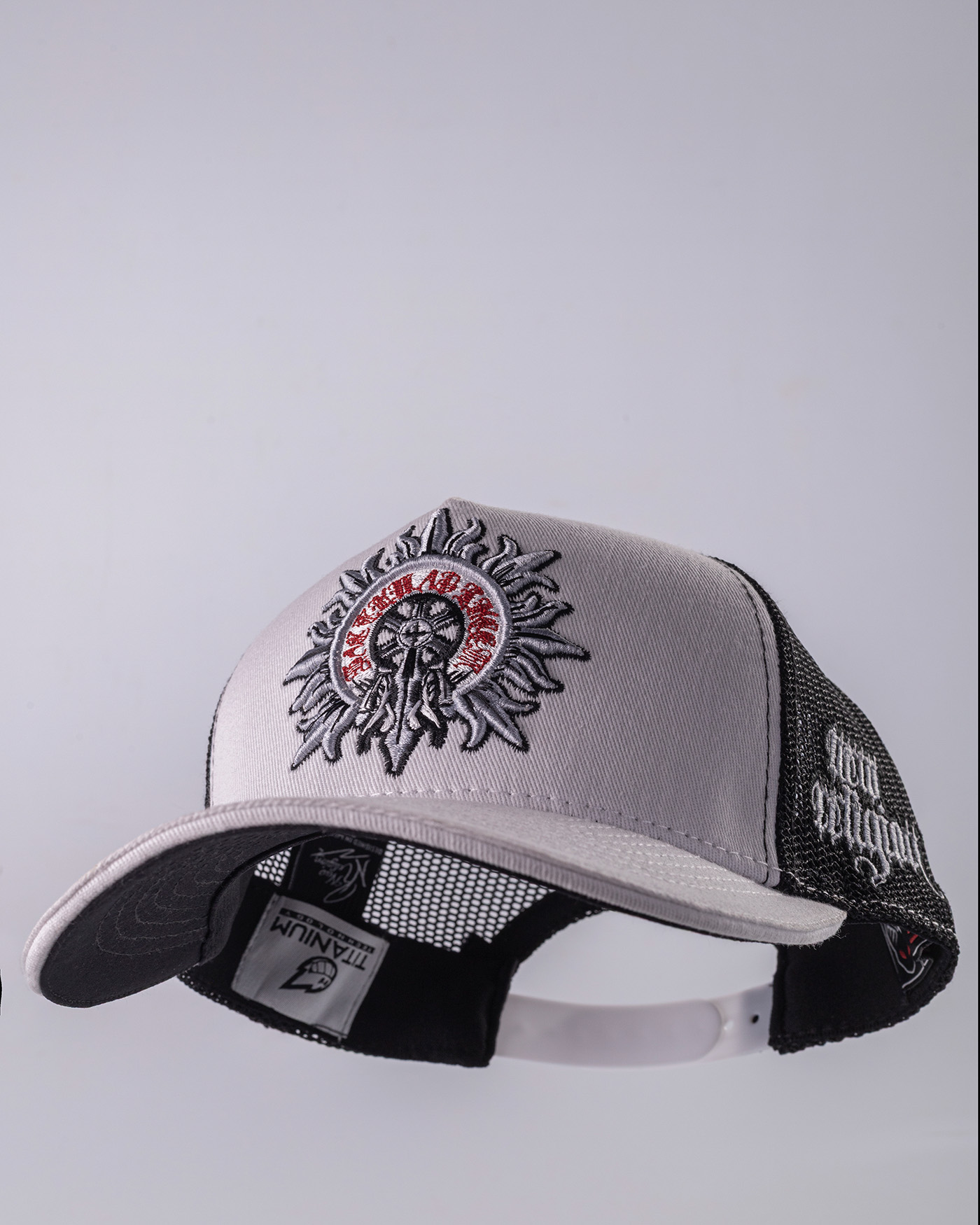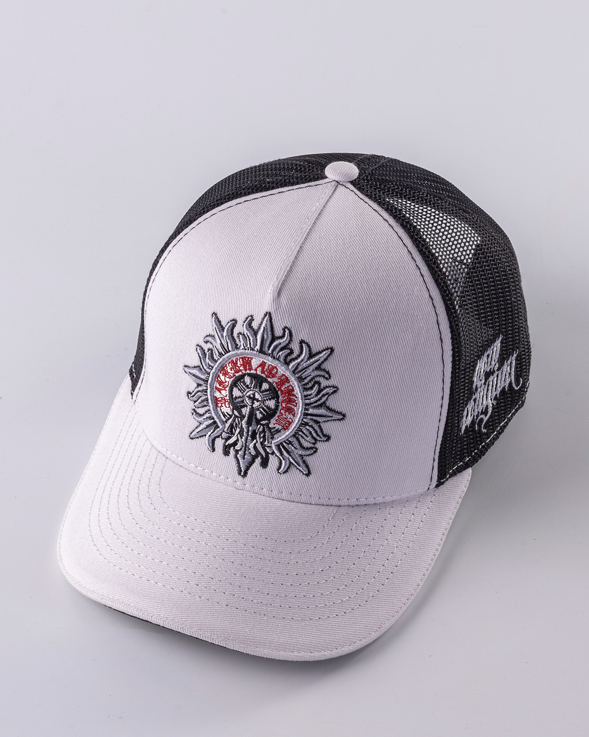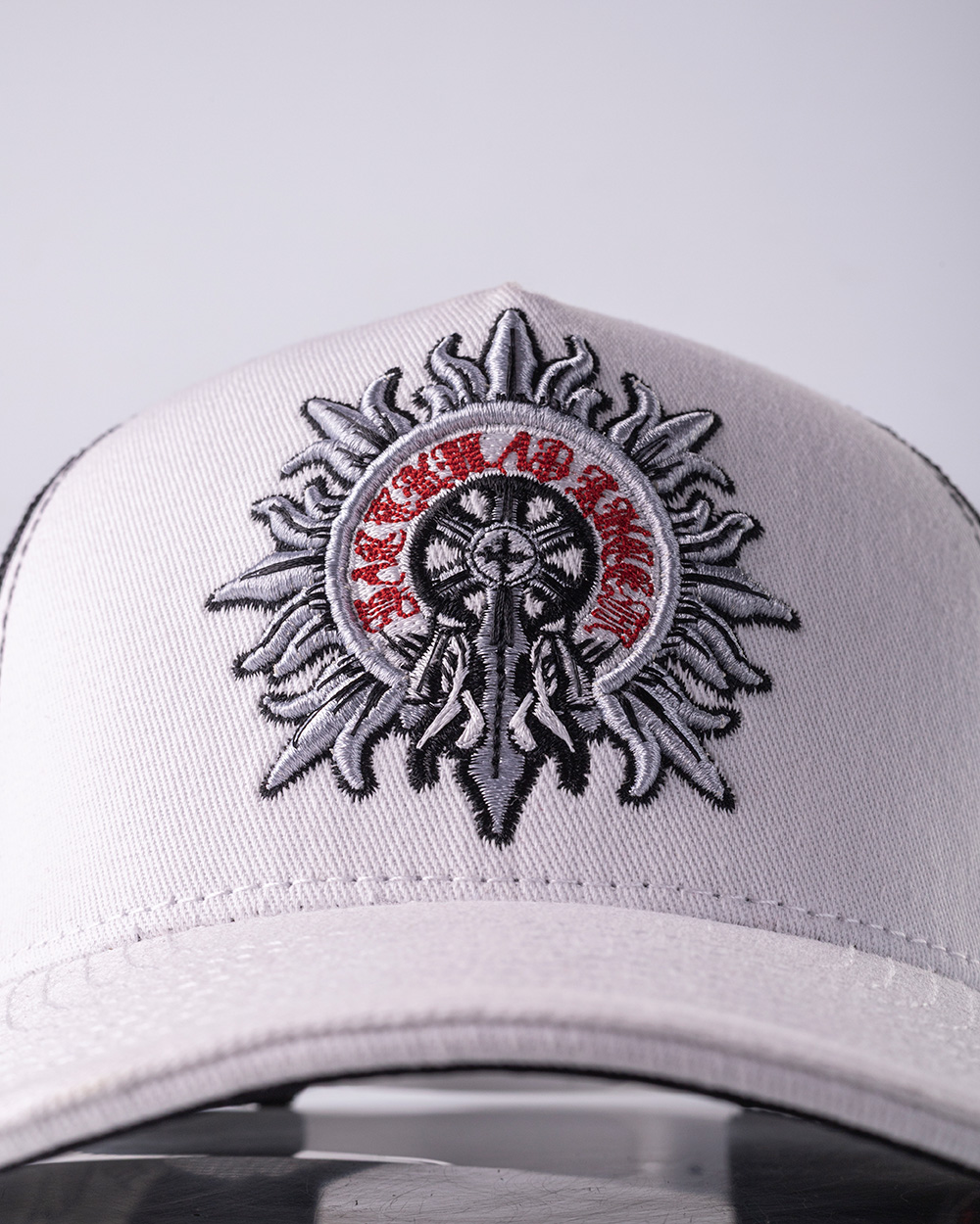 鈥OLOR: Gorra en color blanco y negro, bordados en gris ceniza, rojo sangre, hueso mate, negro y blanco.